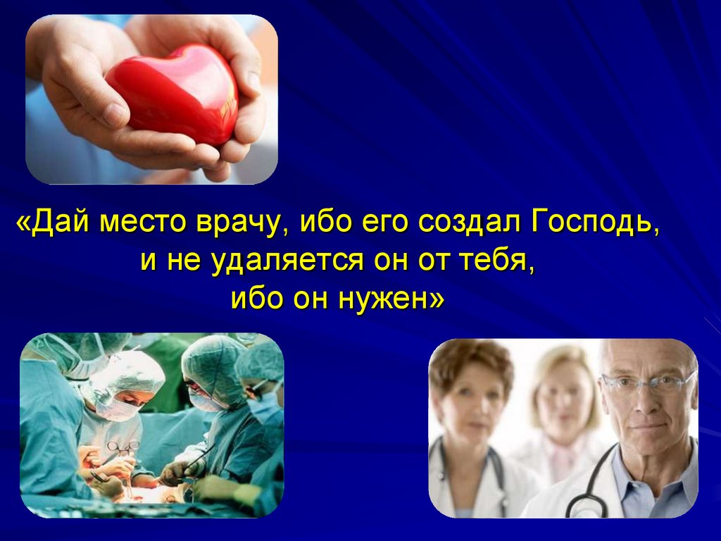 «Дай место врачу, ибо его создал Господь,и не удаляется он от тебя,