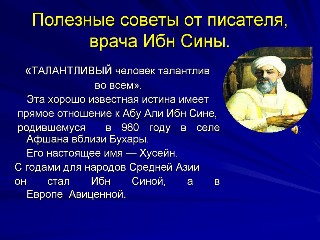 Полезные советы от писателя,врача Ибн Сины.