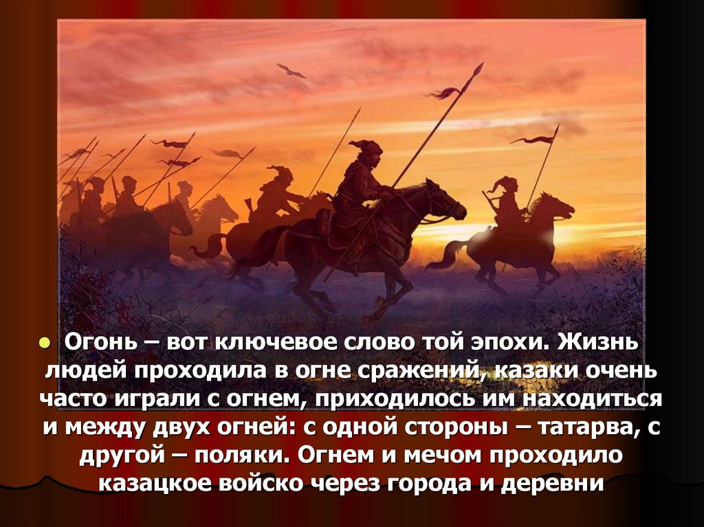 Огонь – вот ключевое слово той эпохи. Жизньлюдей проходила в огне сражений, казаки очень