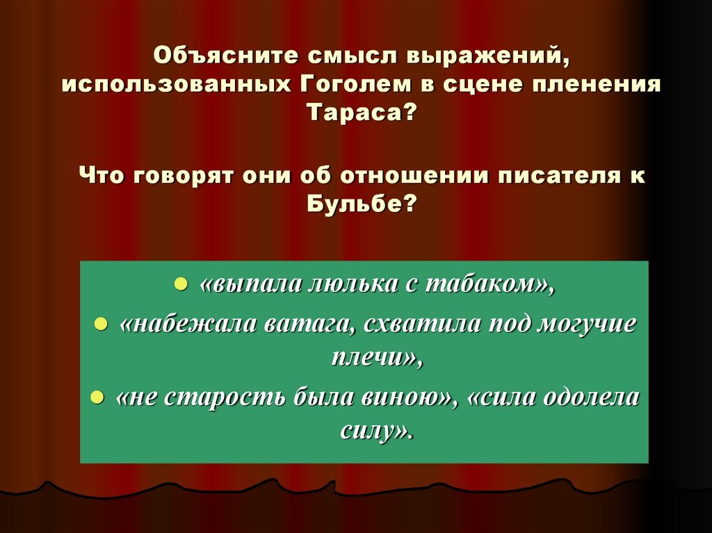 Объясните смысл выражений,использованных Гоголем в сцене пленения