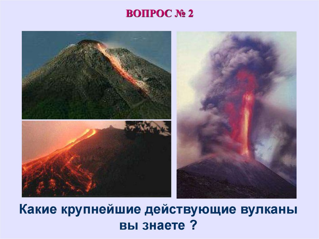 ВОПРОС № 2Какие крупнейшие действующие вулканы