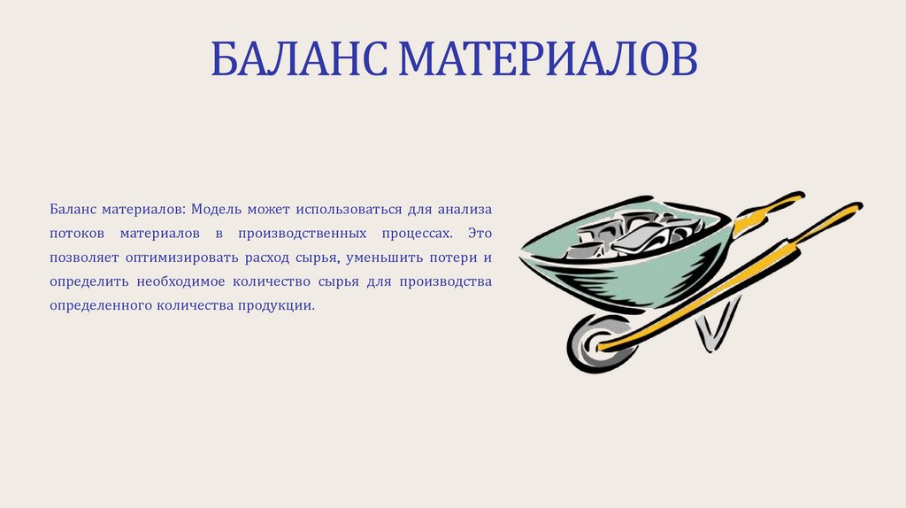БАЛАНС МАТЕРИАЛОВБаланс материалов: Модель может использоваться для анализа