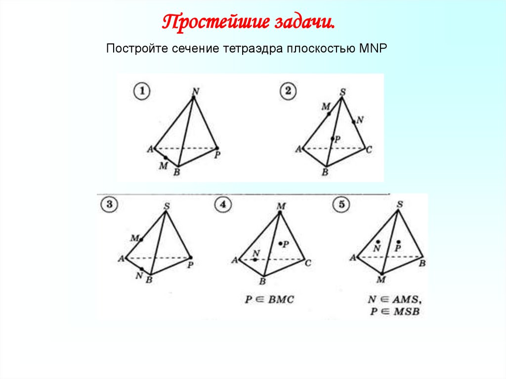 Простейшие задачи.Постройте сечение тетраэдра плоскостью MNP