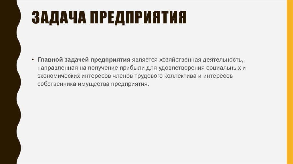 ЗАДАЧА ПРЕДПРИЯТИЯ• Главной задачей предприятия является хозяйственная деятельность,
