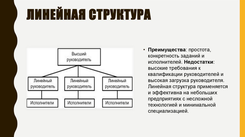 ЛИНЕЙНАЯ СТРУКТУРА• Преимущества: простота,