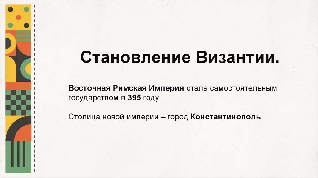 Становление Византии.Восточная Римская Империя стала самостоятельным