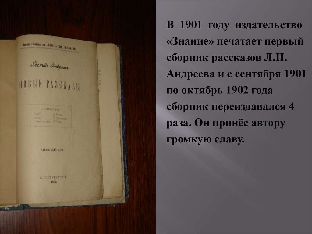 В 1901 году издательство«Знание» печатает первый