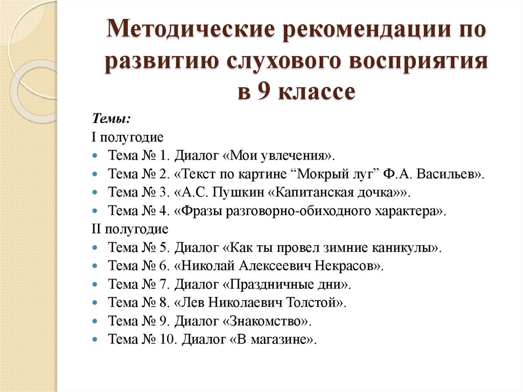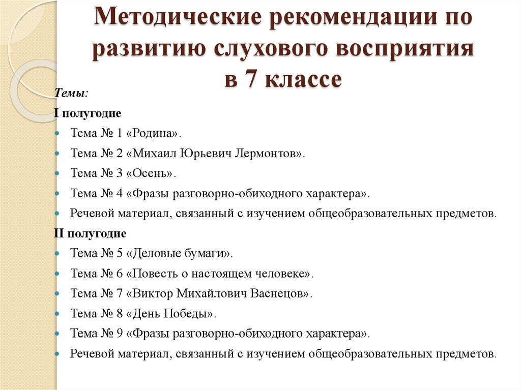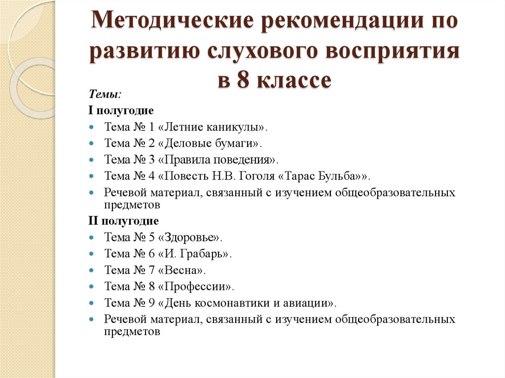 Методические рекомендации по развитию слухового восприятия у глухих обучающихся 7-9 классов