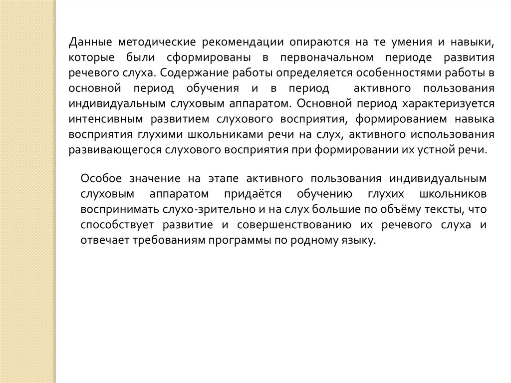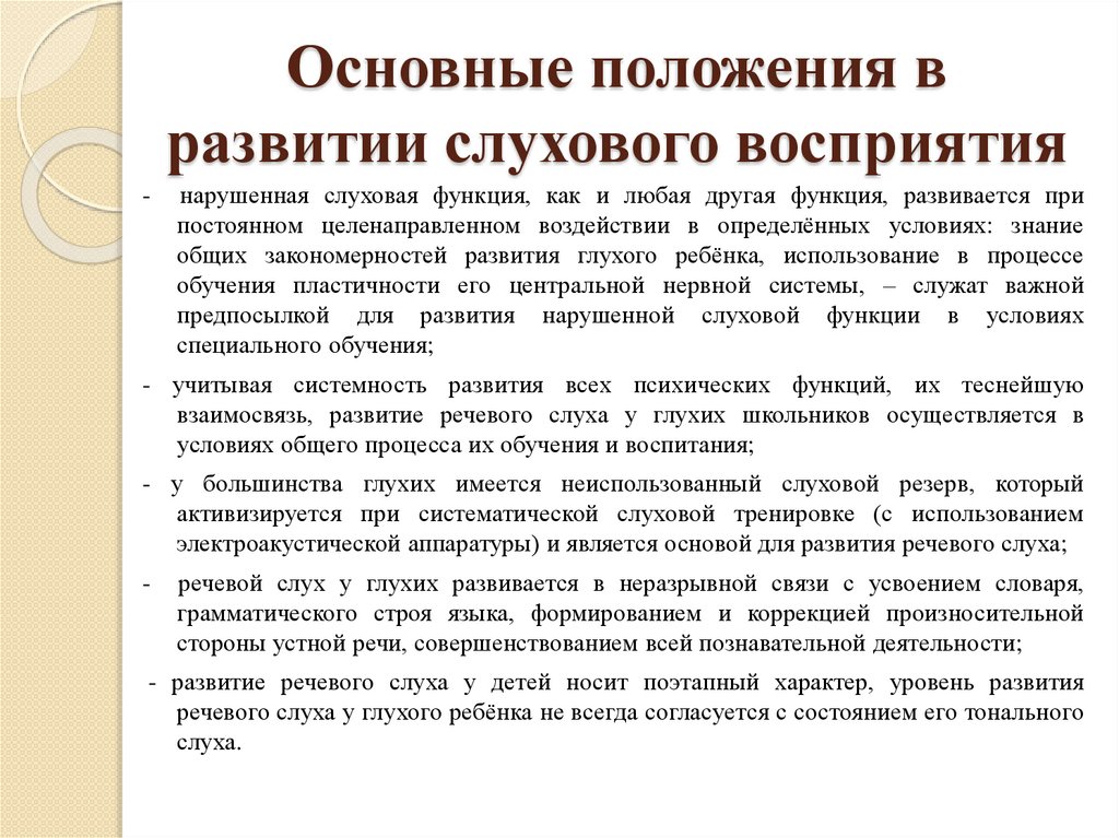 электроакустической аппаратуры) и является основой для развития речевого слуха;