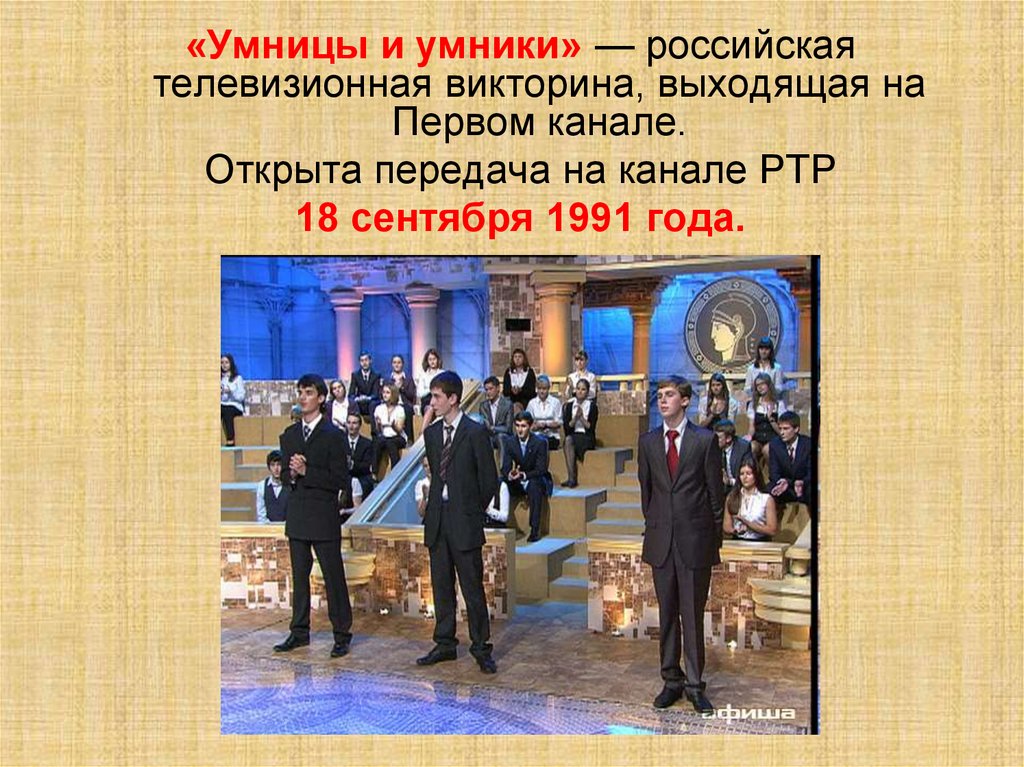 «Умницы и умники» — российскаятелевизионная викторина, выходящая на