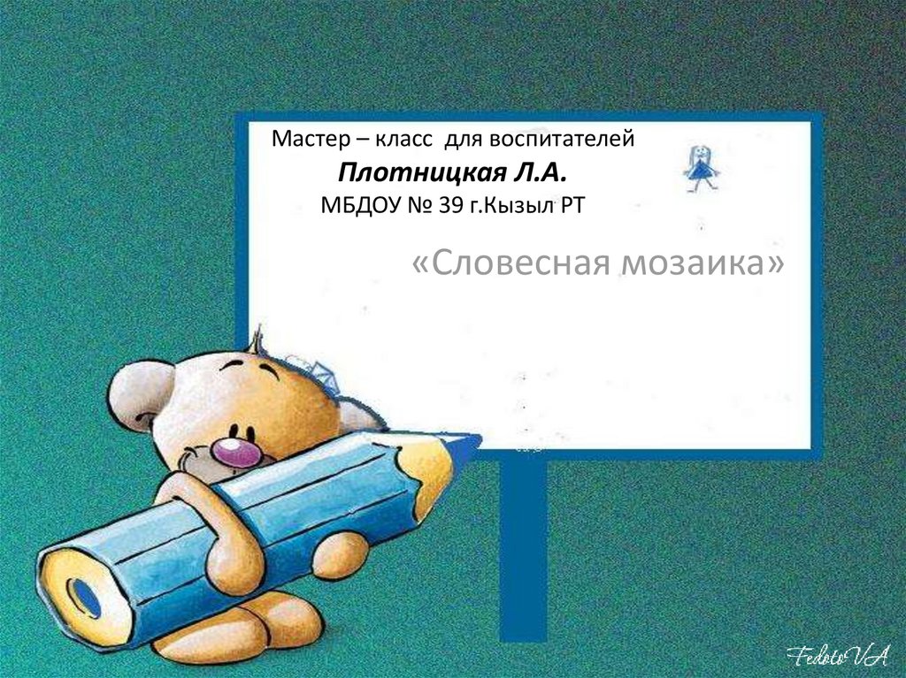 1. Мастер – класс для воспитателей Плотницкая Л.А. МБДОУ № 39 г.Кызыл РТ