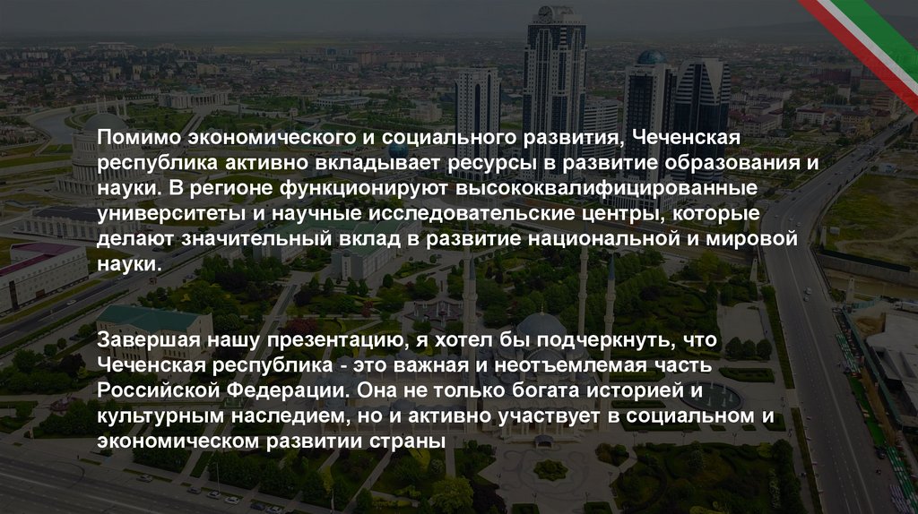 Помимо экономического и социального развития, Чеченскаяреспублика активно вкладывает ресурсы в развитие образования и