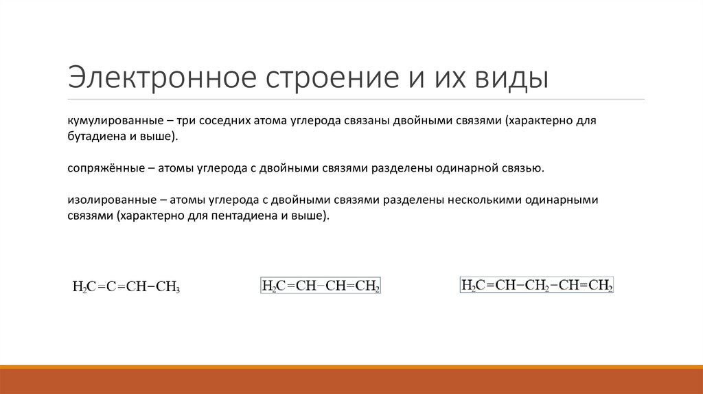Электронное строение и их видыкумулированные – три соседних атома углерода связаны двойными связями (характерно для
