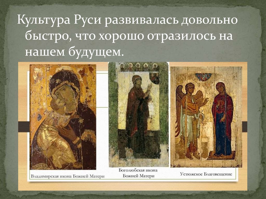 Культура Руси развивалась довольнобыстро, что хорошо отразилось на
