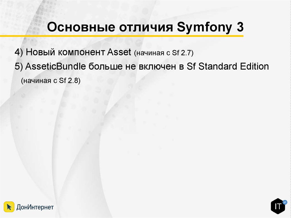 Основные отличия Symfony 34) Новый компонент Asset (начиная с Sf 2.7)