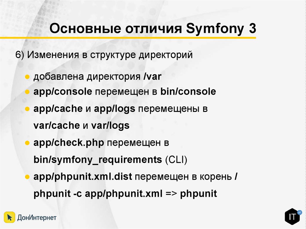 Основные отличия Symfony 36) Изменения в структуре директорий