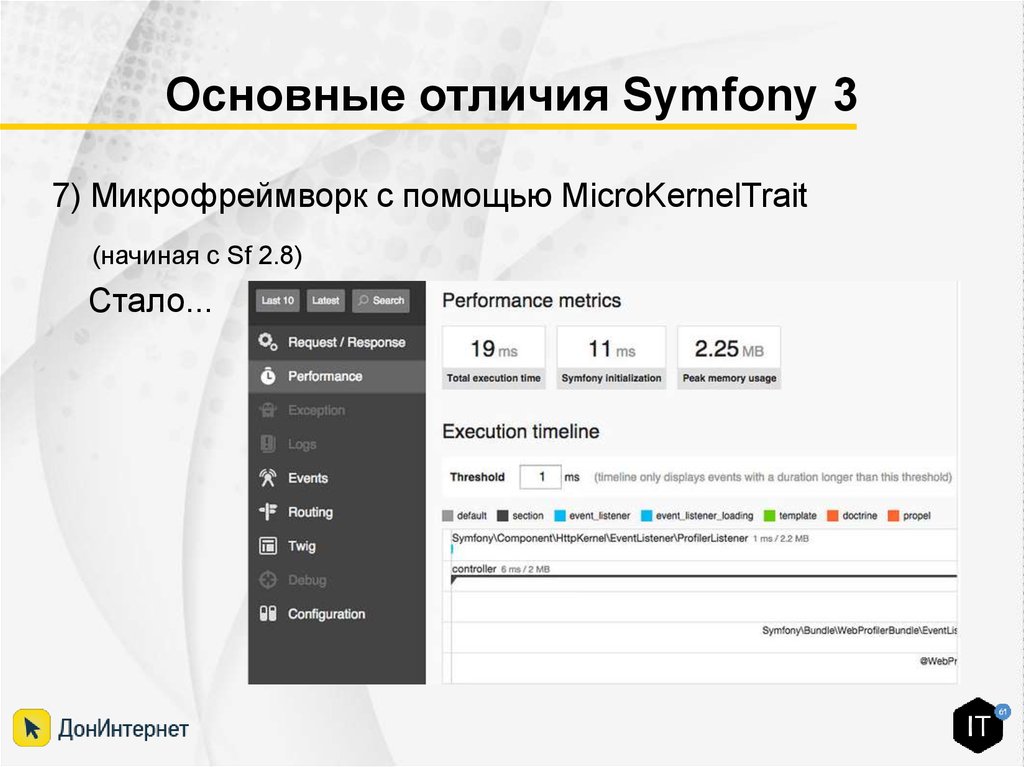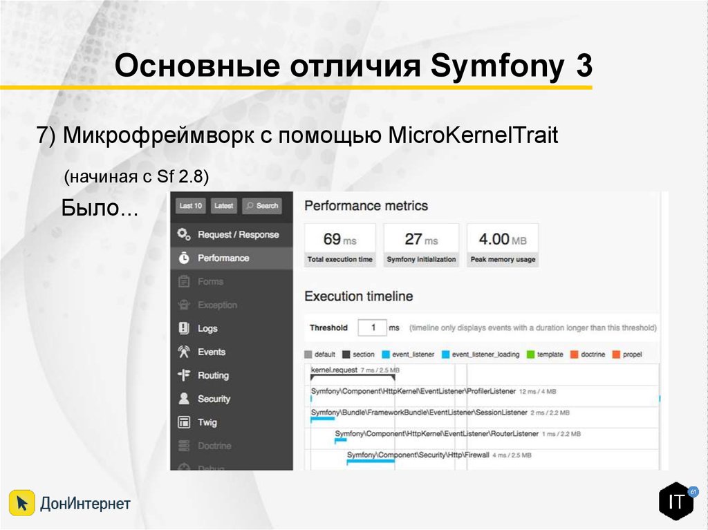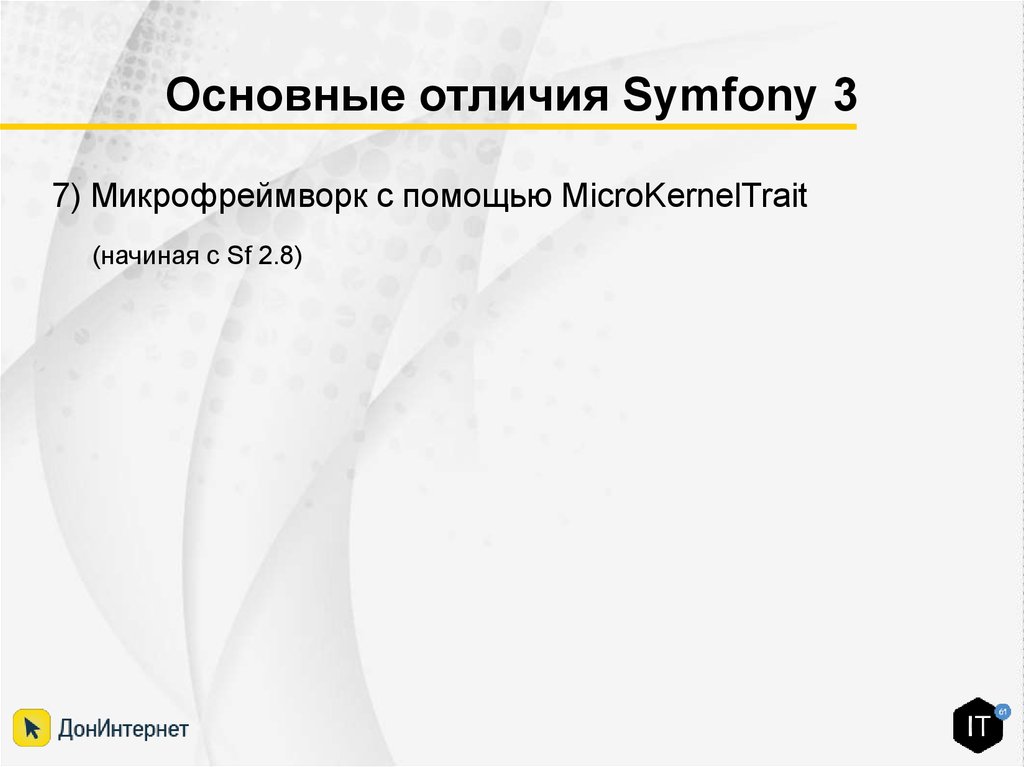 Основные отличия Symfony 37) Микрофреймворк с помощью MicroKernelTrait