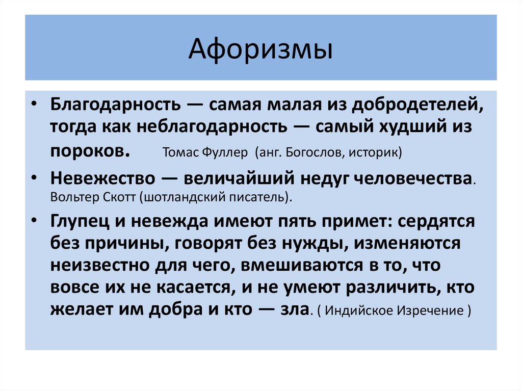 Афоризмы• Благодарность — самая малая из добродетелей,