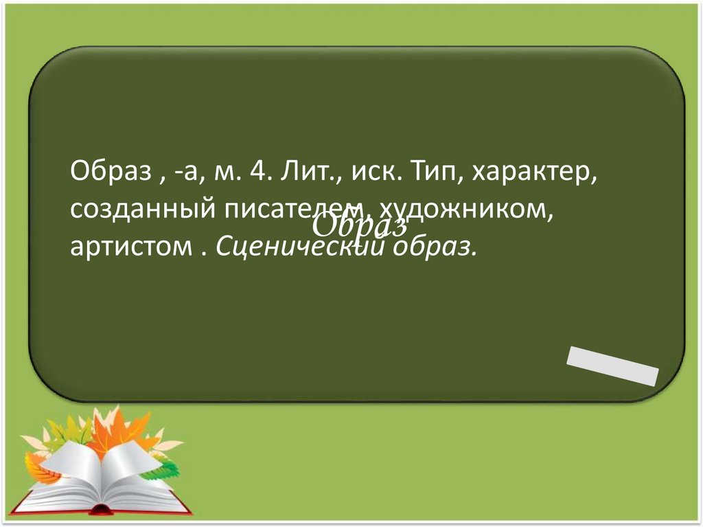 Образ , -а, м. 4. Лит., иск. Тип, характер,созданный писателем, художником,