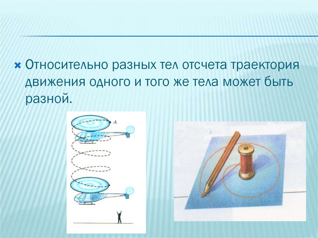 Относительно разных тел отсчета траекториядвижения одного и того же тела может быть