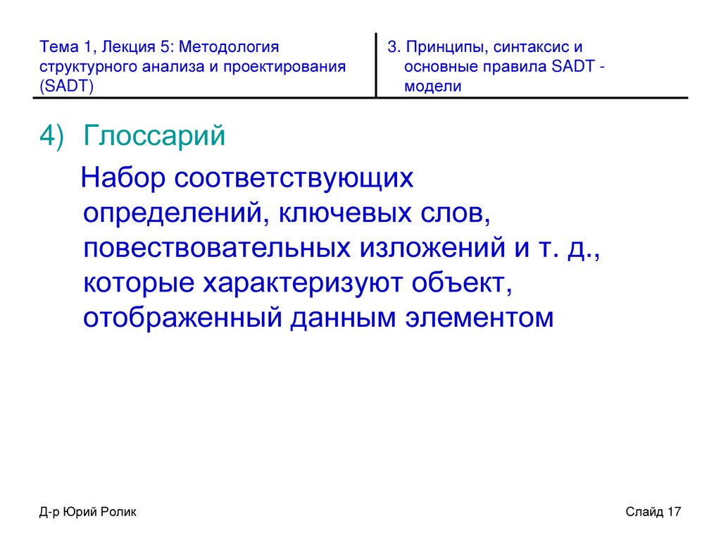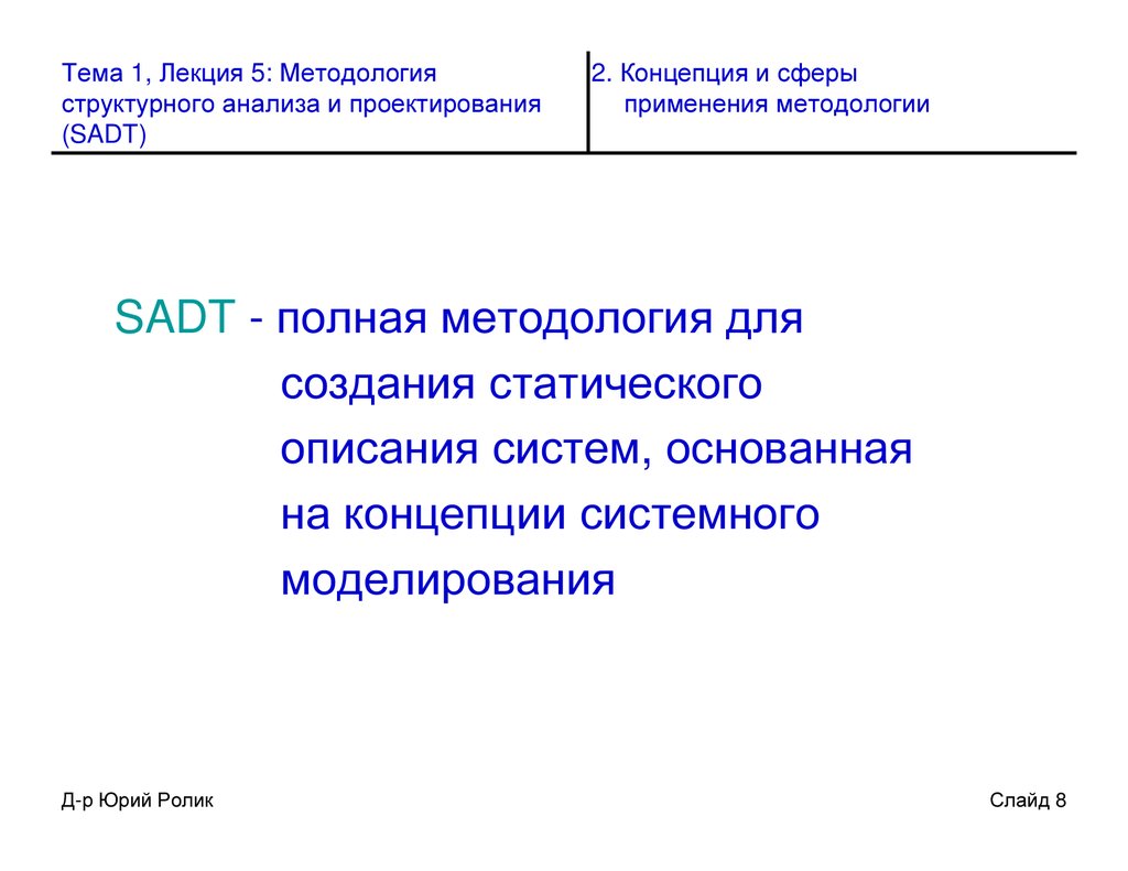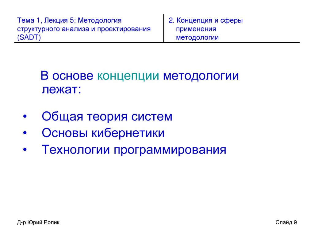 Тема 1, Лекция 5: Методологияструктурного анализа и проектирования