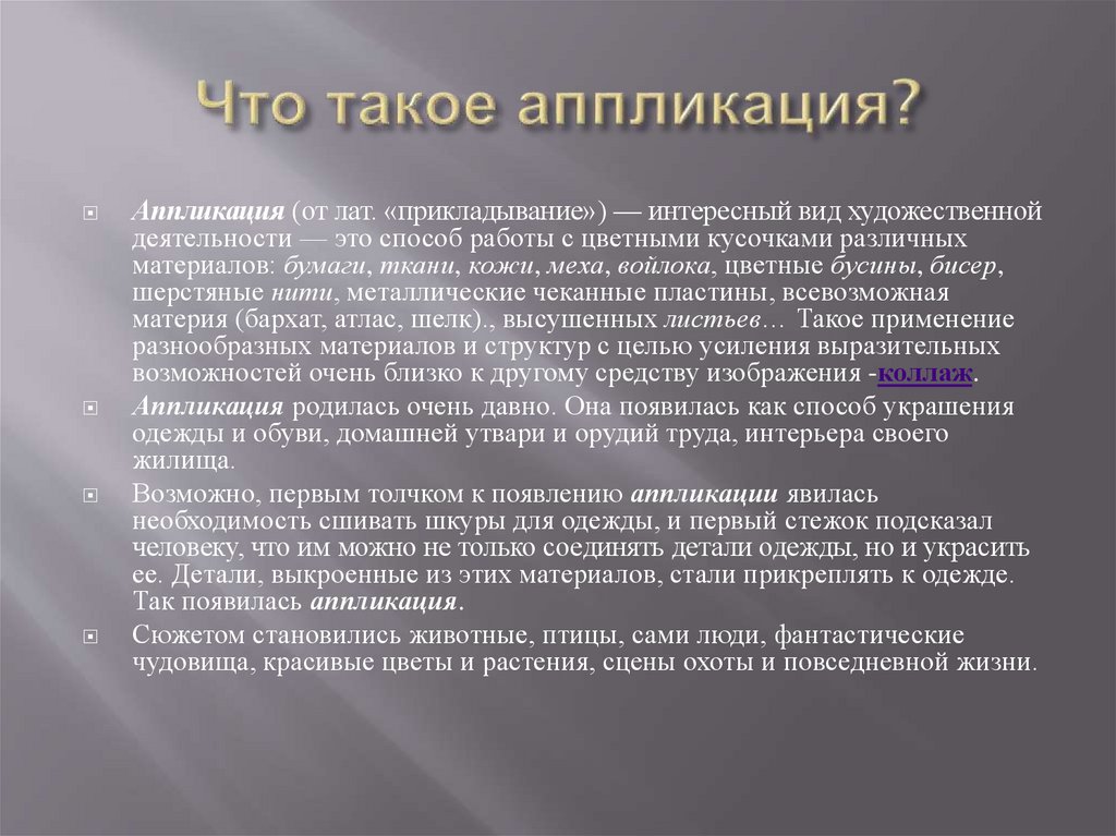 Аппликация родилась очень давно. Она появилась как способ украшения