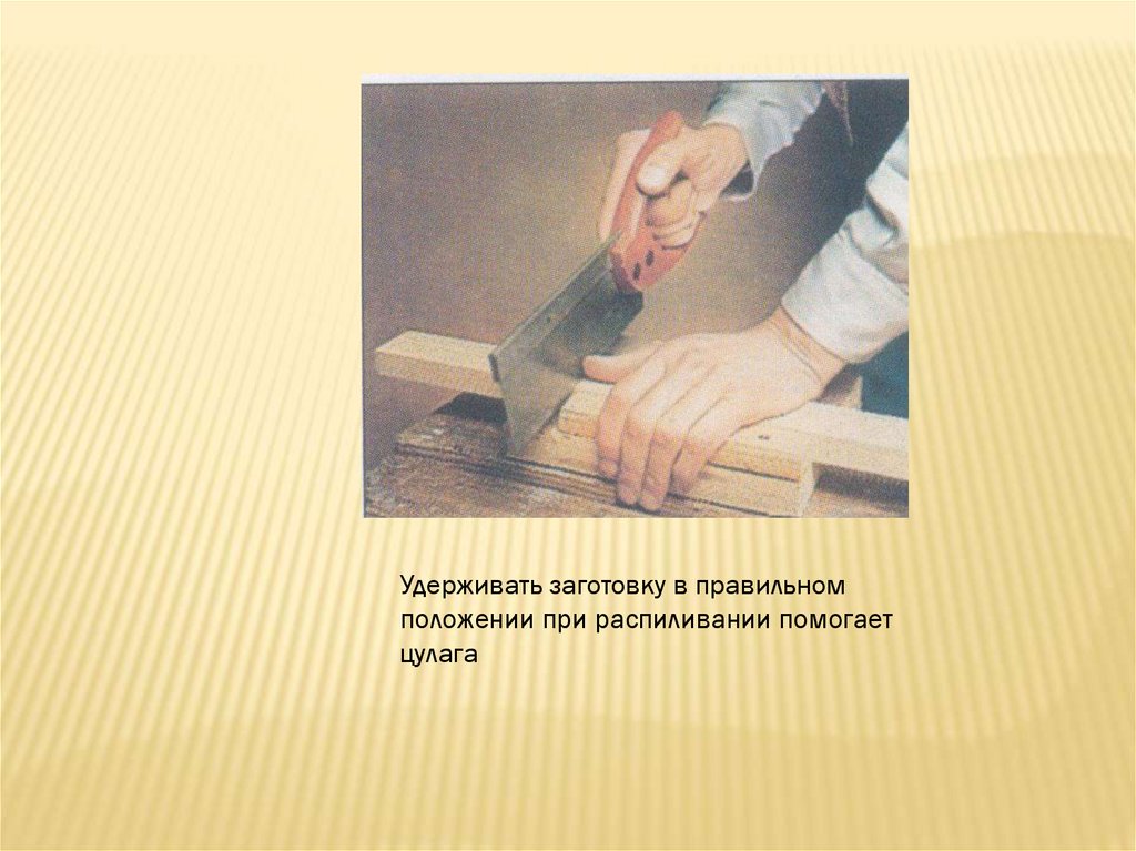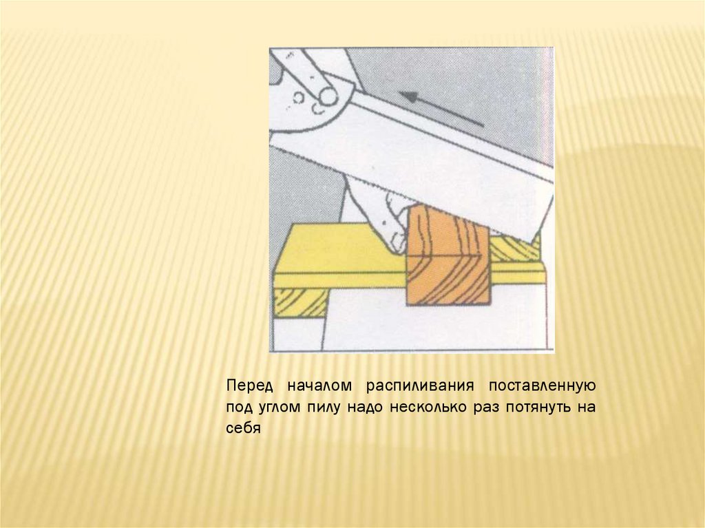 Перед началом распиливания поставленнуюпод углом пилу надо несколько раз потянуть на