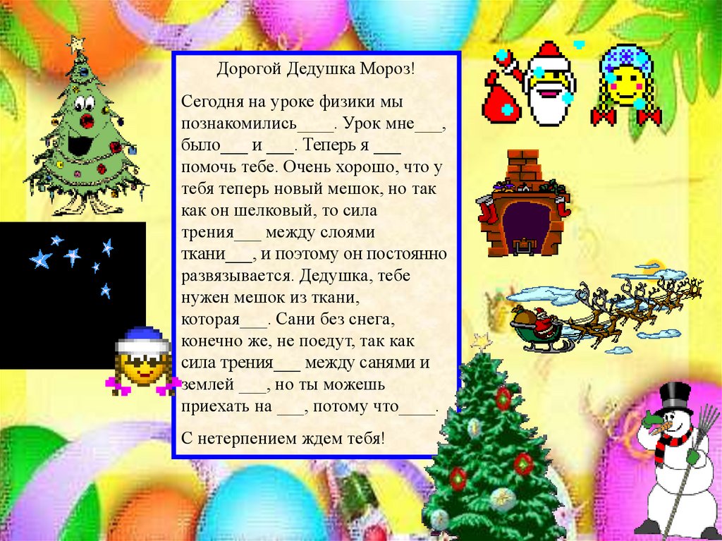 Дорогой Дедушка Мороз!Сегодня на уроке физики мы