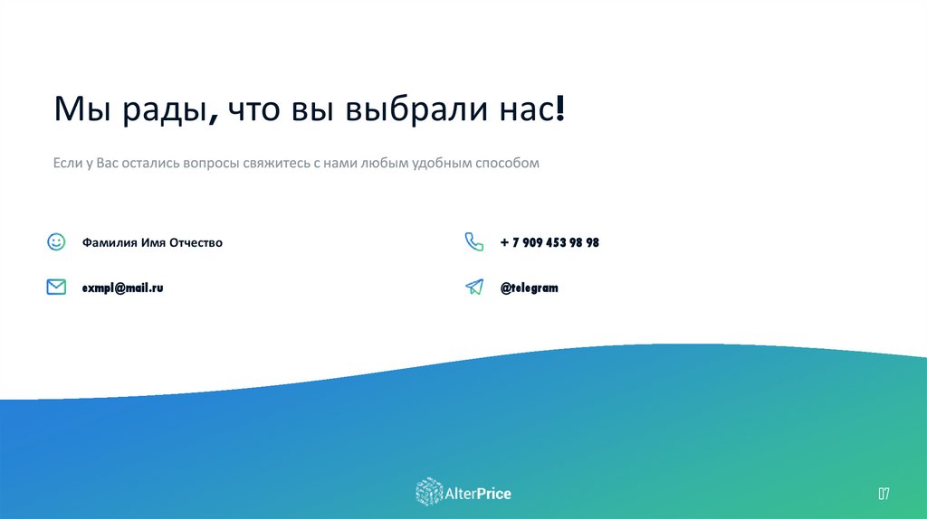 Мы рады, что вы выбрали нас!Фамилия Имя Отчество