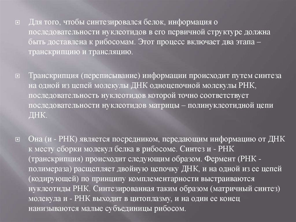 Транскрипция (переписывание) информации происходит путем синтеза