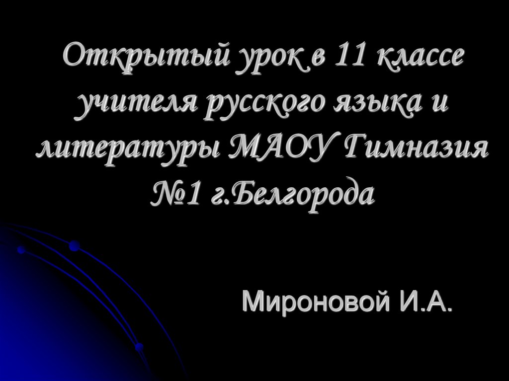 1. Открытый урок в 11 классе учителя русского языка и литературы МАОУ Гимназия №1 г.Белгорода Мироновой И.А.