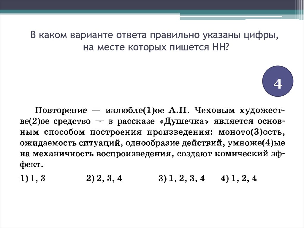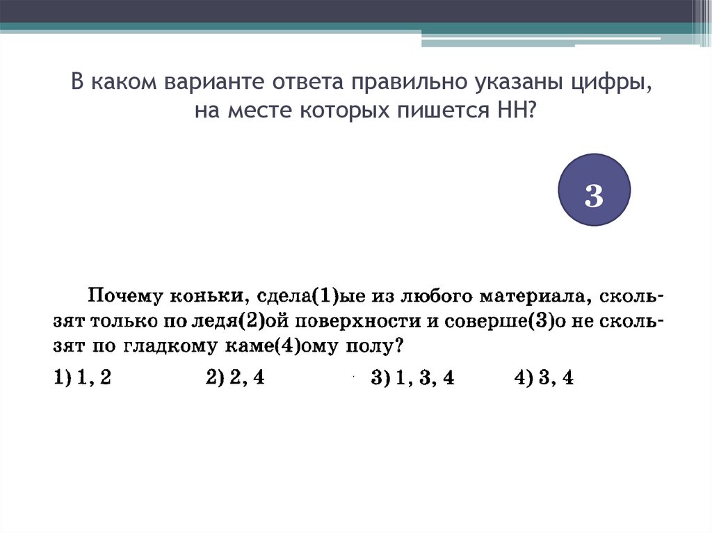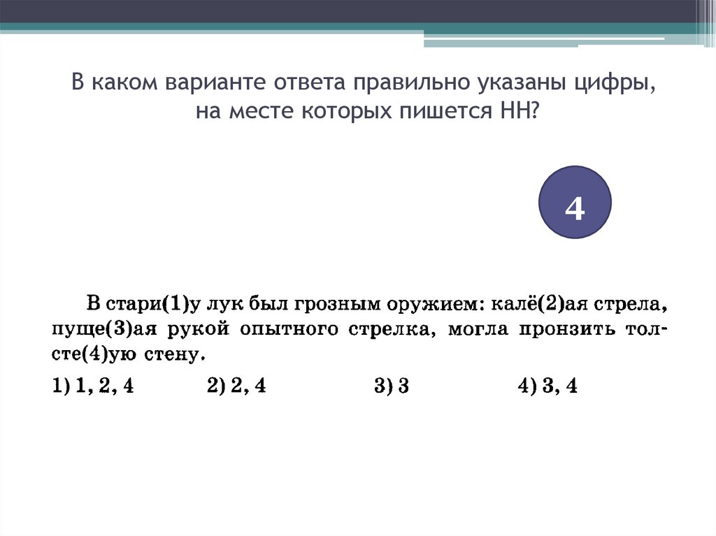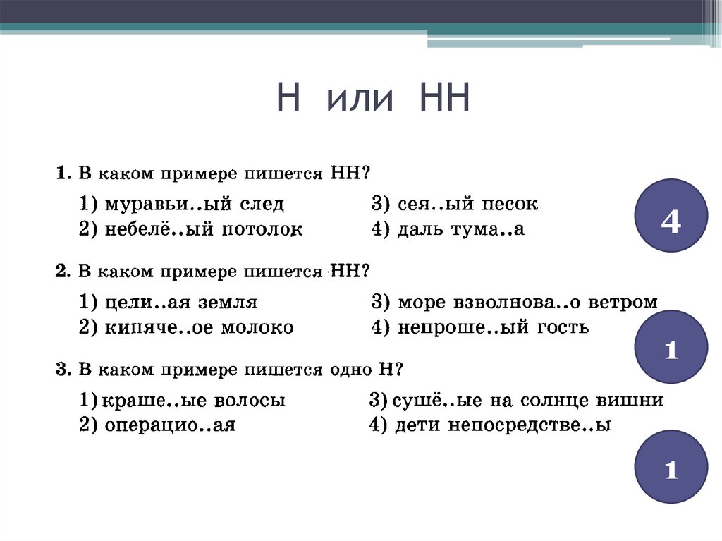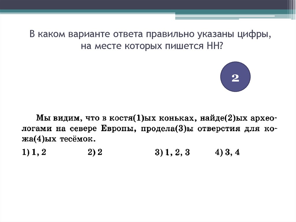 В каком варианте ответа правильно указаны цифры,на месте которых пишется НН?