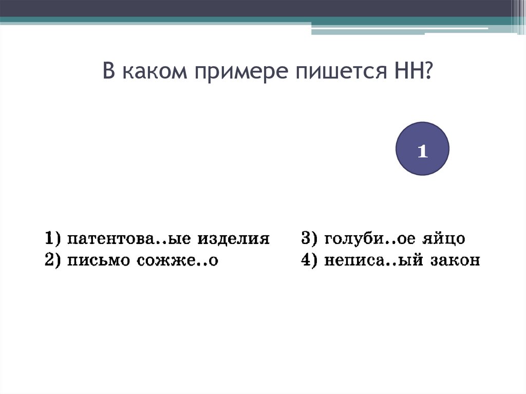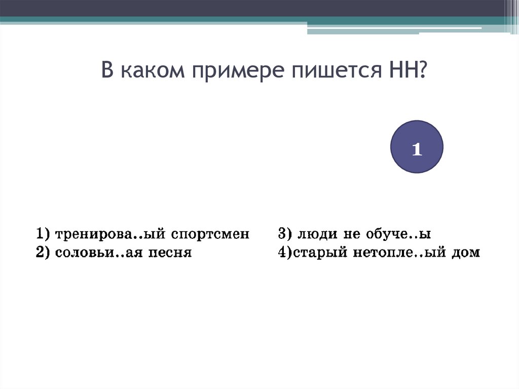 В каком примере пишется НН?1