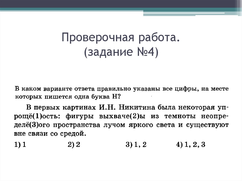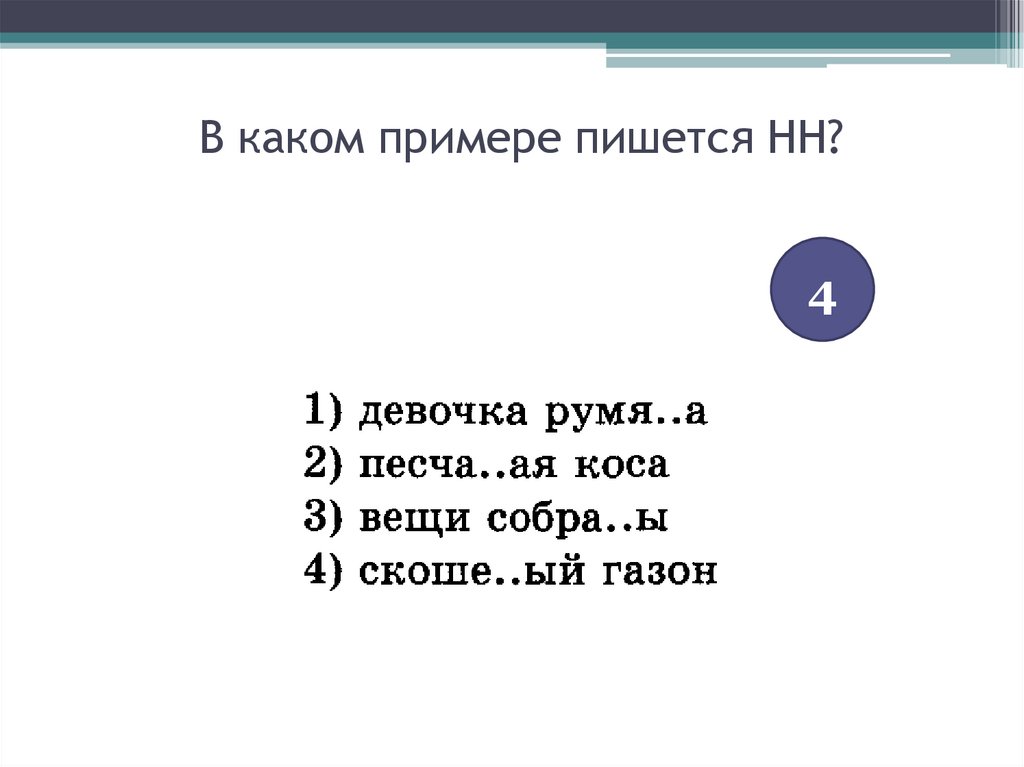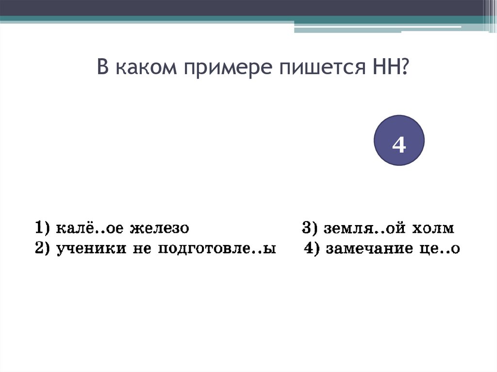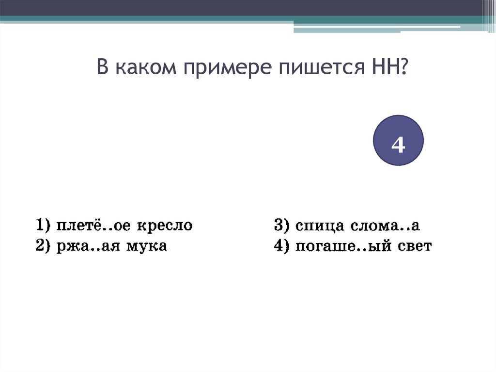 В каком примере пишется НН?4