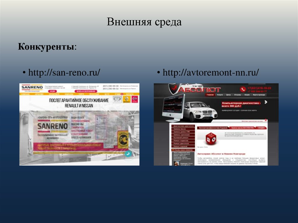 Внешняя средаКонкуренты: