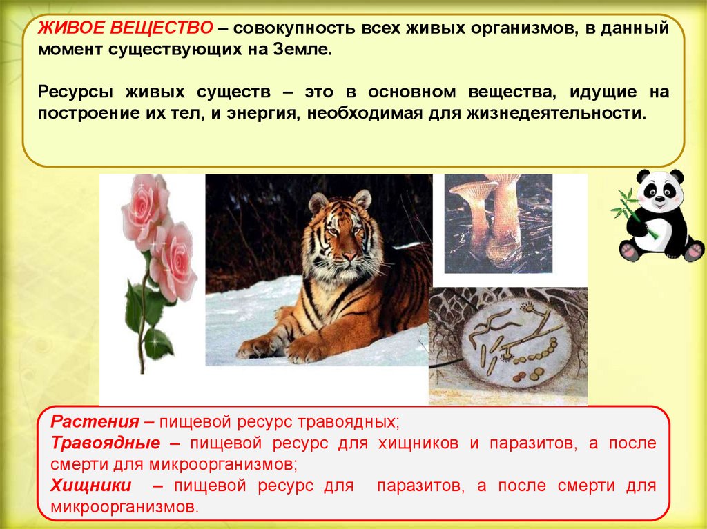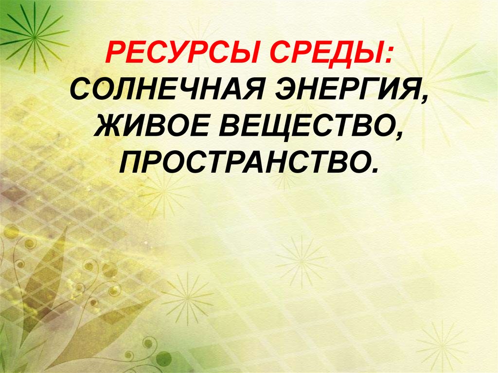 Ресурсы среды: солнечная энергия, живое вещество, пространство