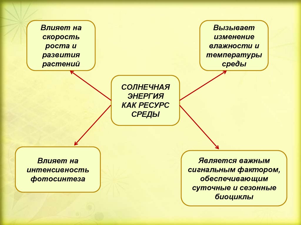 РЕСУРСЫ СРЕДЫ:СОЛНЕЧНАЯ ЭНЕРГИЯ,