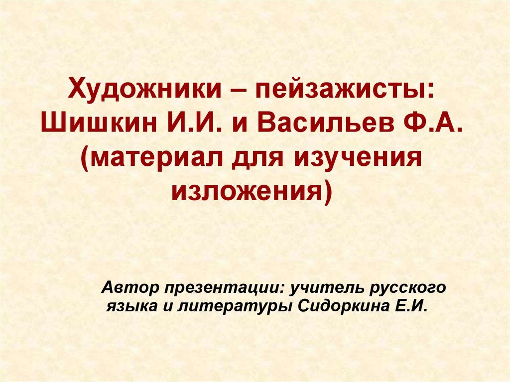 1. Художники – пейзажисты: Шишкин И.И. и Васильев Ф.А. (материал для изучения изложения)