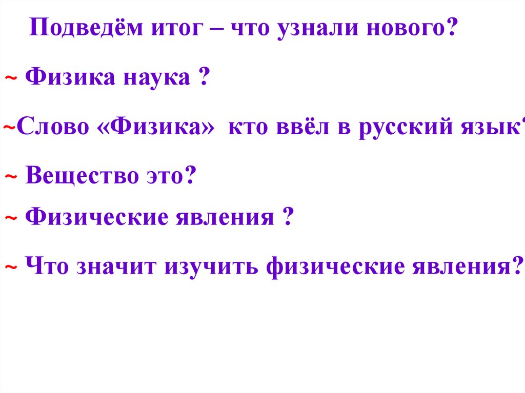 Подведём итог – что узнали нового?~ Физика наука ?