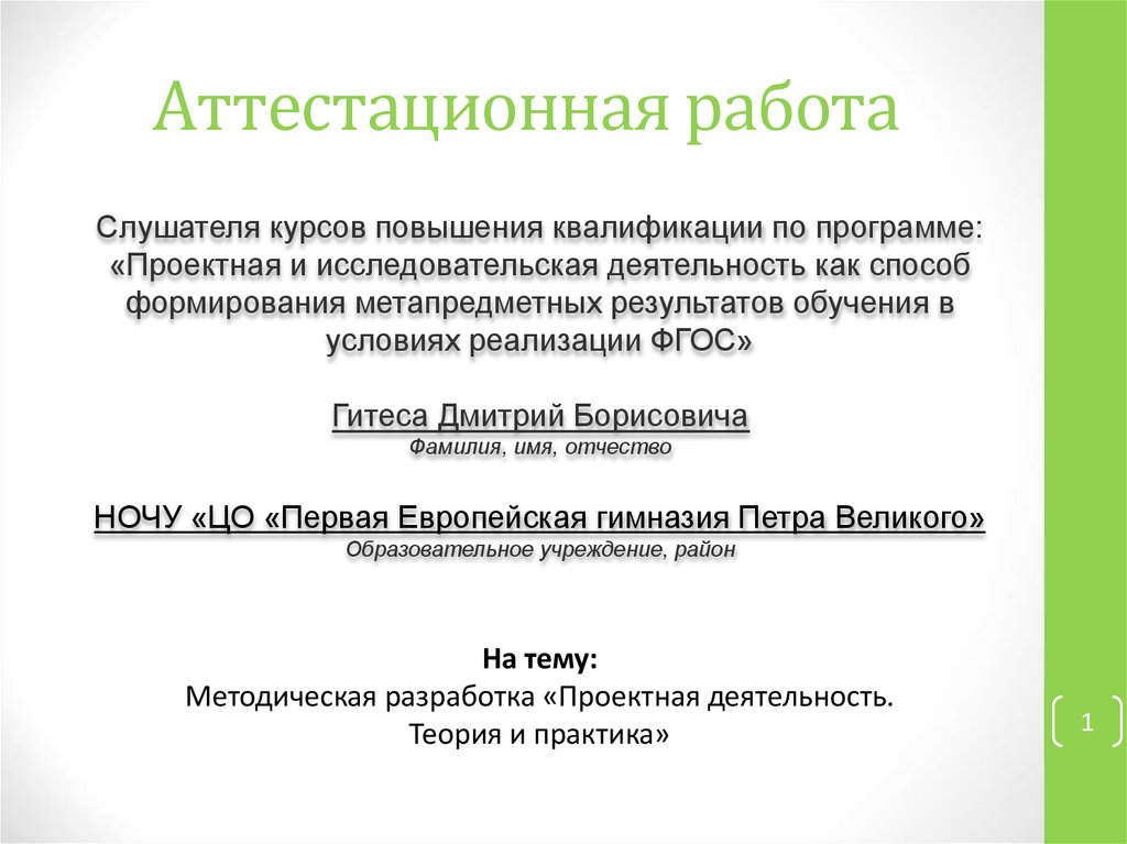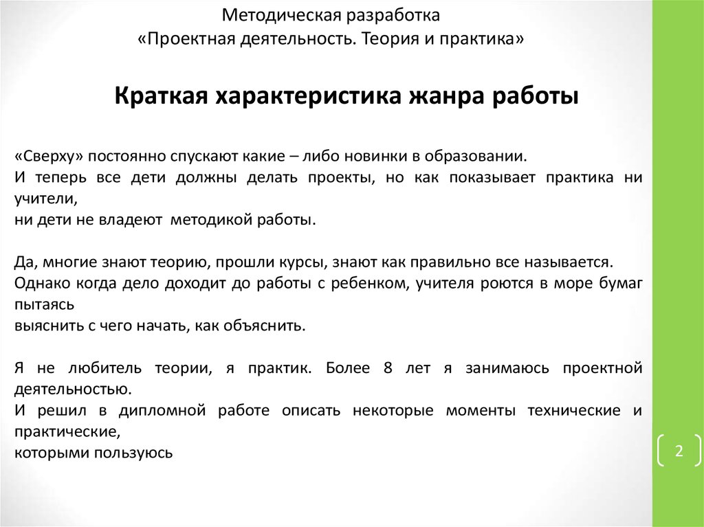 Аттестационная работа. Методическая разработка «Проектная деятельность. Теория и практика»