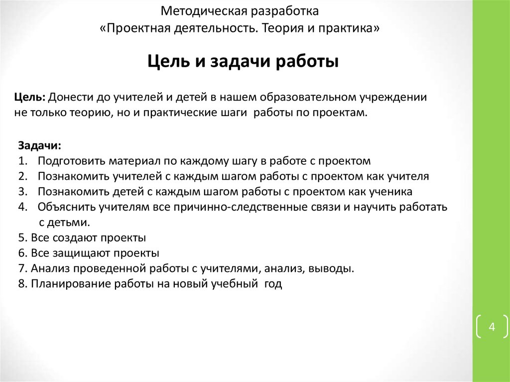 Методическая разработка«Проектная деятельность. Теория и практика»