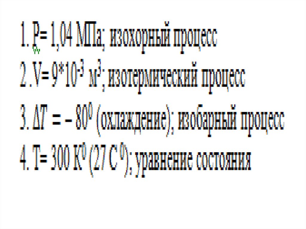 • Температуру газа при постоянном объеме изменили от 1270С до 470С.