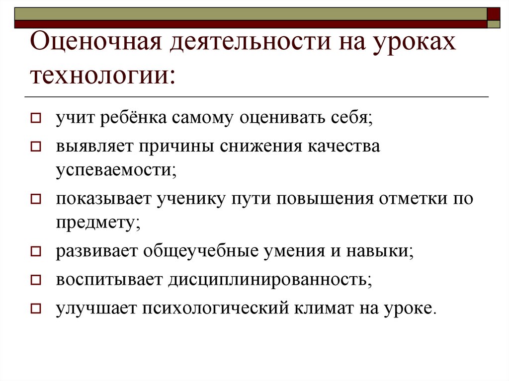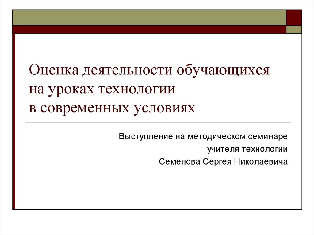 1. Оценка деятельности обучающихся на уроках технологии в современных условиях