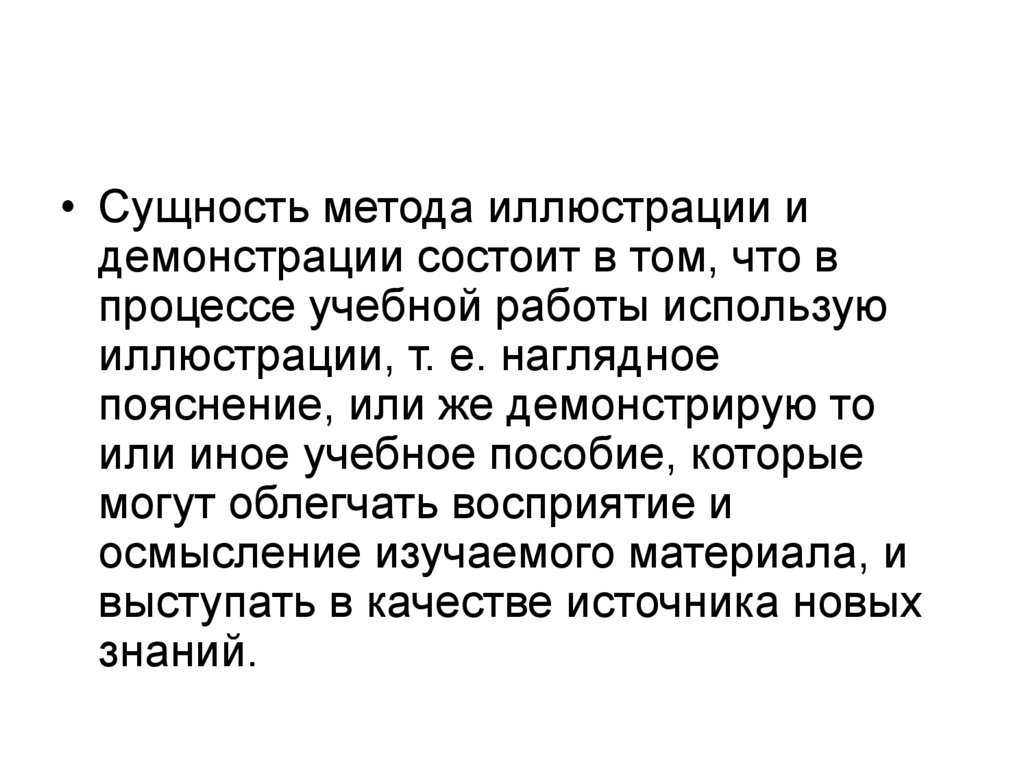 • Сущность метода иллюстрации идемонстрации состоит в том, что в