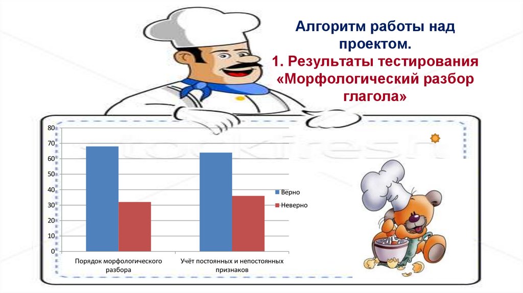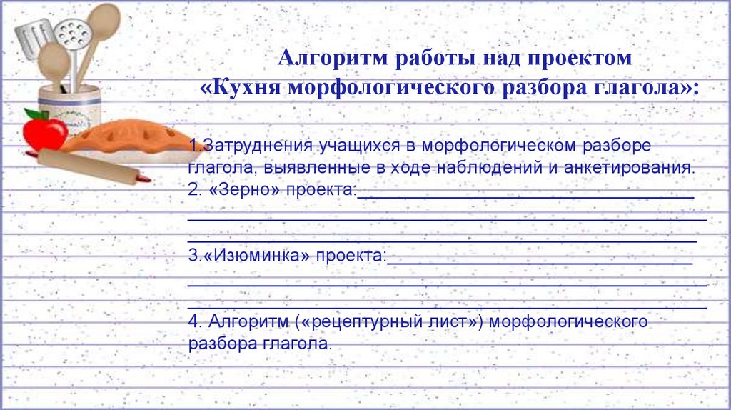 Алгоритм работы над проектом«Кухня морфологического разбора глагола»: