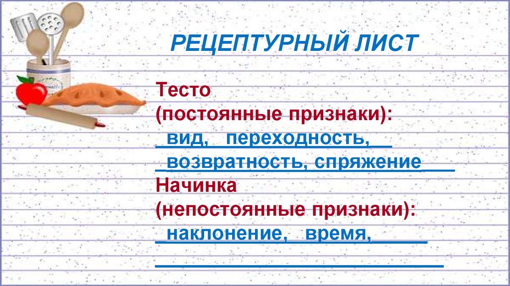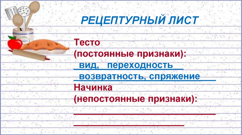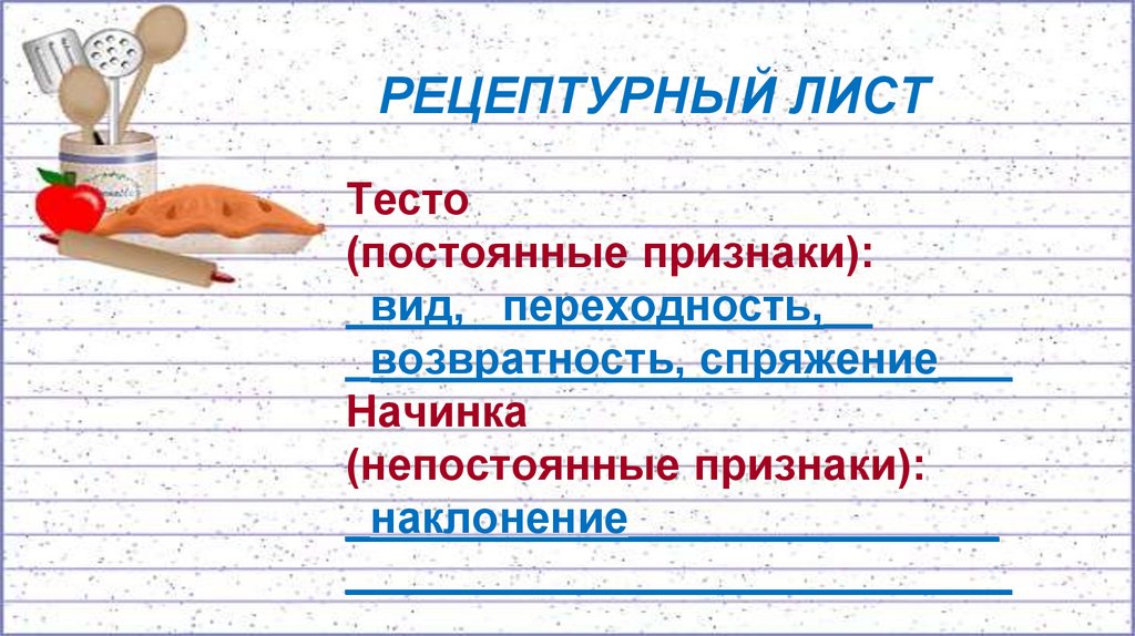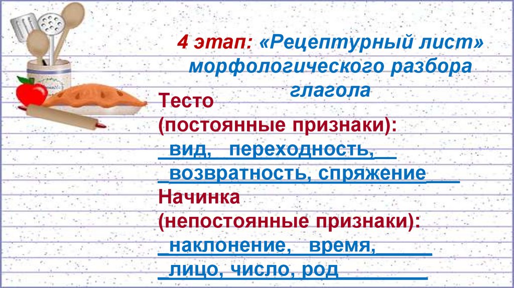Кухня морфологического разбора глагола. Кулинарно-лингвистический мастер-класс