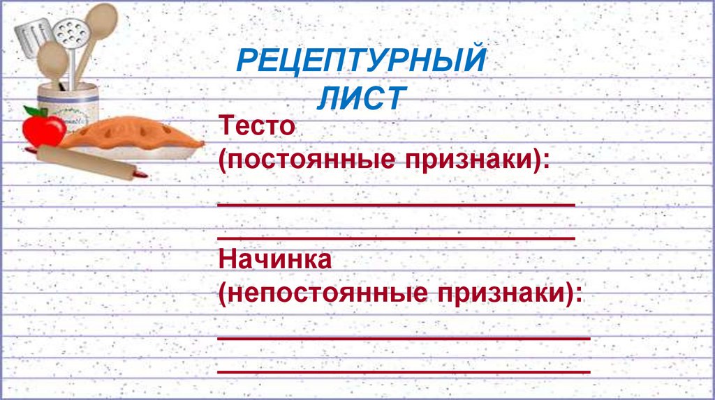 3 этап. «Изюминка» проекта:РЕЦЕПТУРНЫЙ ЛИСТ
