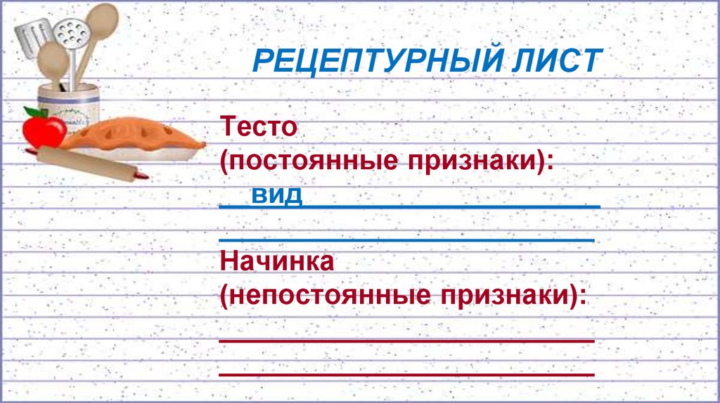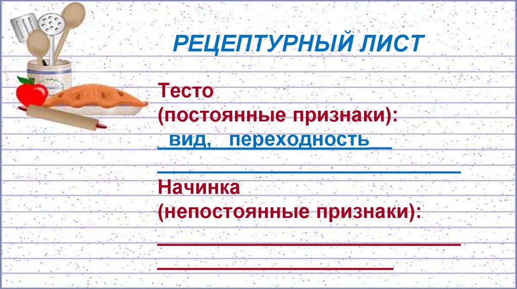 РЕЦЕПТУРНЫЙ ЛИСТТесто