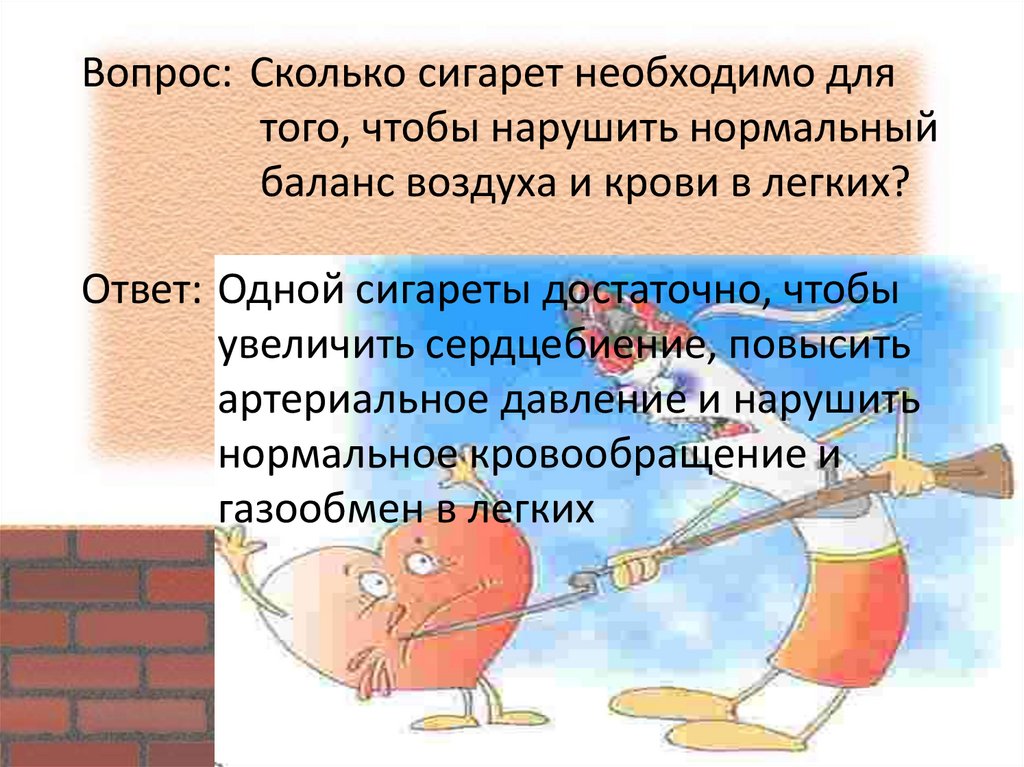 Вопрос: Сколько сигарет необходимо длятого, чтобы нарушить нормальный