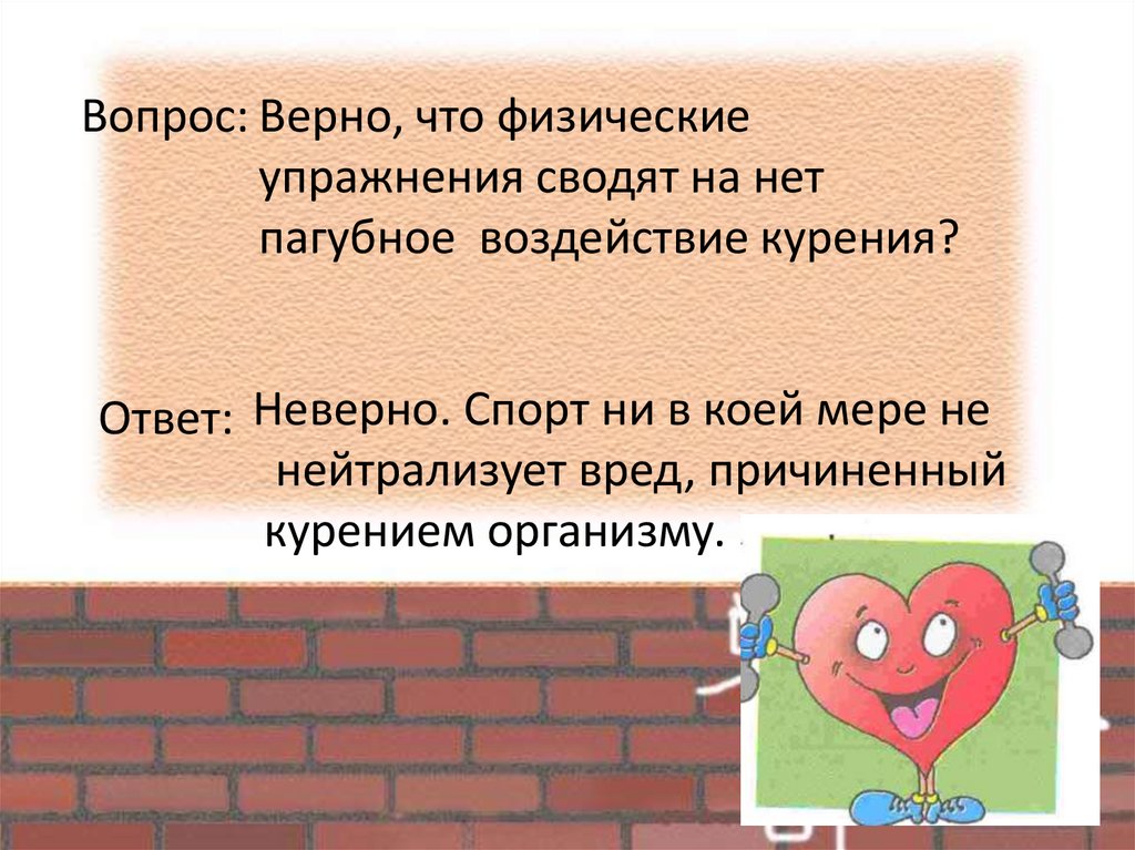 Вопрос: Верно, что физическиеупражнения сводят на нет